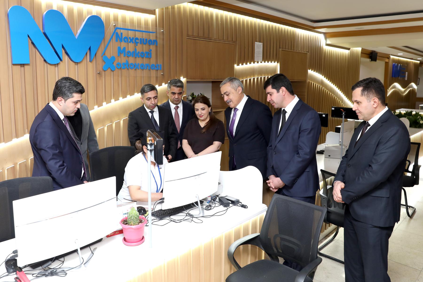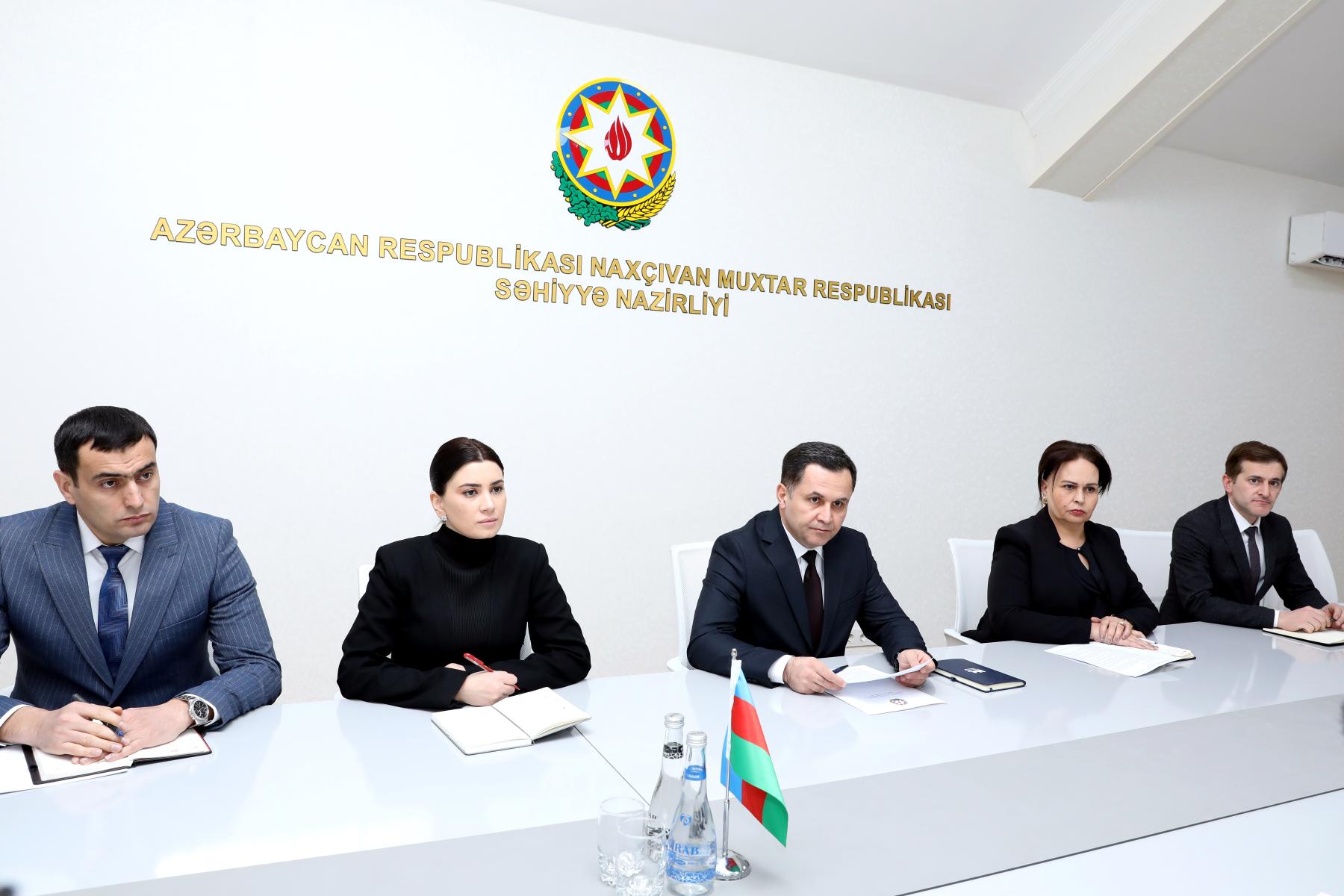 İcbari Tibbi Sığorta üzrə Dövlət Agentliyinin İdarə Heyətinin sədri Zaur Əliyevin rəhbərlik etdiyi nümayəndə heyətinin Naxçıvan Muxtar Respublikasına səfəri çərçivəsində Naxçıvan Muxtar Respublikası Səhiyyə Nazirliyində görüş keçirilib. Görüşdə nazir vəzifəsini müvəqqəti icra edən Rəşadət Nabatovla səhiyyə sahəsində görülən işlər müzakirə olunub. Zaur Əliyev, həmçinin Naxçıvan Mərkəzi Xəstəxanasında yaradılan şəraitlə tanış olub, tibb müəssisəsində göstərilən xidmətlərin mövcud vəziyyəti ilə bağlı məlumat alıb.