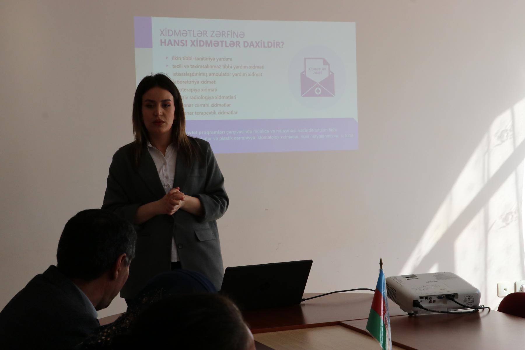Daha sonra tədbir iştirakçılarına icbari tibbi sığortadan istifadə qaydaları haqqında təqdimatla geniş məlumat verilmişdir.